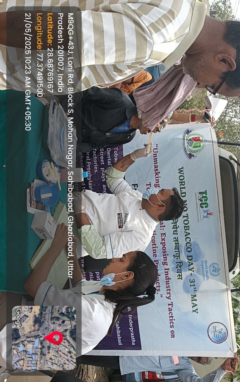 The theme for World No Tobacco Day 2025 is "Unmasking the Appeal: Exposing Industry Tactics on Tobacco and Nicotine Products". Dr Geetika Arora (Professor and Head) from Department of Public Health Dentistry, Inderprastha Dental College and Hospital, Sahibabad organized 15 days program from 20th May, Tuesday to 5th June 2025, Fridayon occasion of World No Tobacco Day under the able guidance of Dr Rahul Paul (Director and Principal, IPDC), to raise global awareness about the harmful effects of tobacco use and advocate for effective tobacco control policies. The day serves as a platform to unite public health champions worldwide in the fight against tobacco-related diseases and deaths