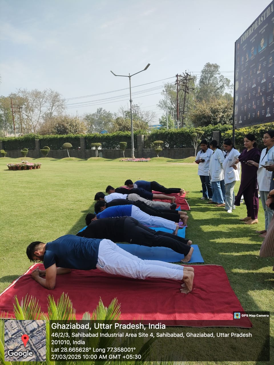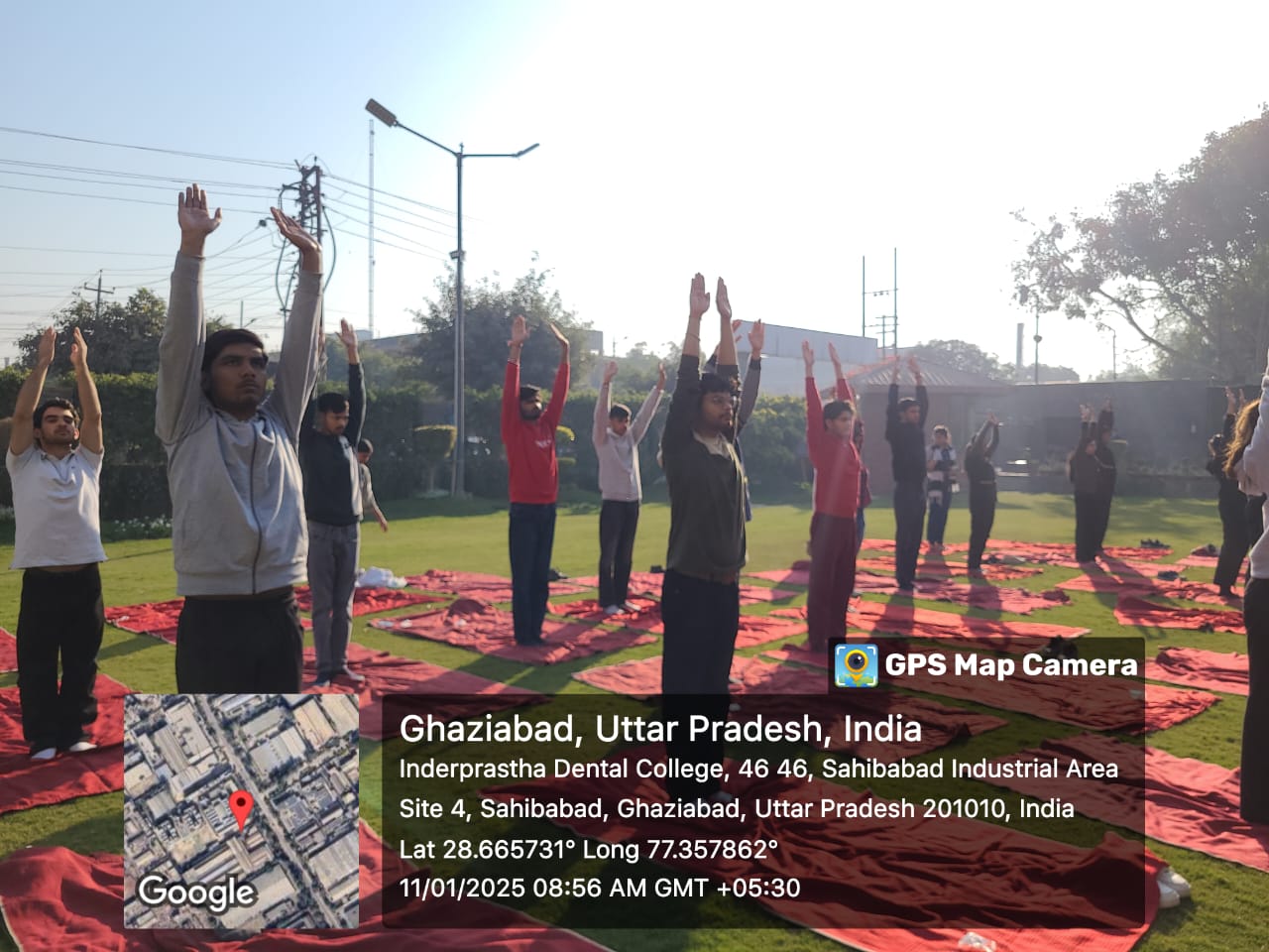 As part of the holistic health and well-being initiative at Inderprastha Dental College and Hospital, a 4-month yoga program was organized for dental students and staff members from 9th November 2024 to 22ndFebruary 2025, in IPDC Grounds of the college. The yoga instructor, Mr. Chander Prakash Gupta along with his team, took yoga sessions with great dedication. The rogram aimed to address common physical and mental stressors faced by dental students and staff members, such as back pain, posture issues, eye strain, and anxiety, and to enhance overall well-being and focus. The yoga program was designed to complement the rigorous academic schedule of dental students, providing them with techniques to improve their physical health, emotional resilience, and mindfulness